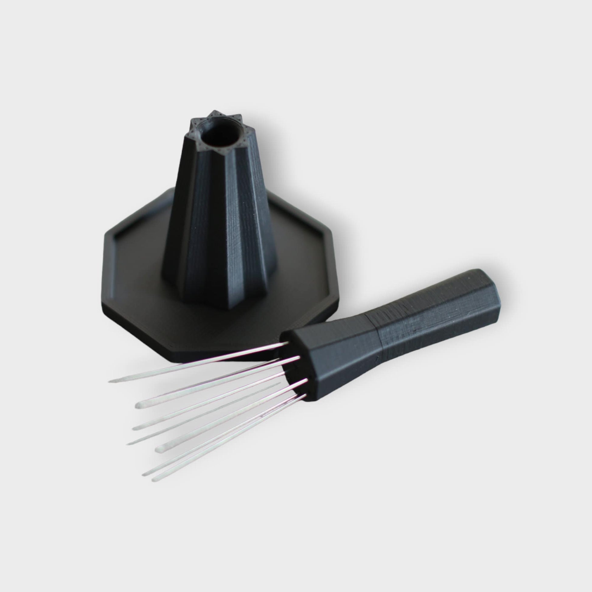 Ein Espresso WDT Tool ist ein praktisches Zubehör für alle Kaffeeliebhaber, die einen perfekten Espresso zubereiten wollen. Mit diesem Tool kannst du das Kaffeemehl gleichmäßig in deinem Siebträger verteilen und so Klumpen und Kanäle vermeiden, die den Geschmack und die Extraktion beeinträchtigen können. Das WDT Tool besteht aus feinen Nadeln, die das Kaffeemehl sanft auflockern und gleichmäßig verteilen. Das 3D gedruckte WDT Tool ist aus hochwertigen erneuerbaren Ressourcen hergestelltem Plastik und Nadeln aus Edelstahl gefertigt.
